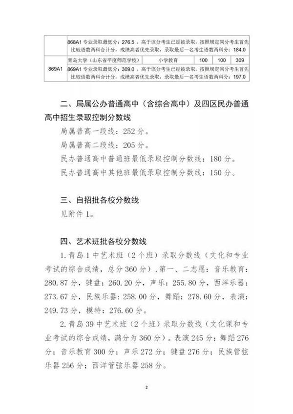 2020青岛中考分数线公布!二中普通班324.5分、五十八中普通班318分